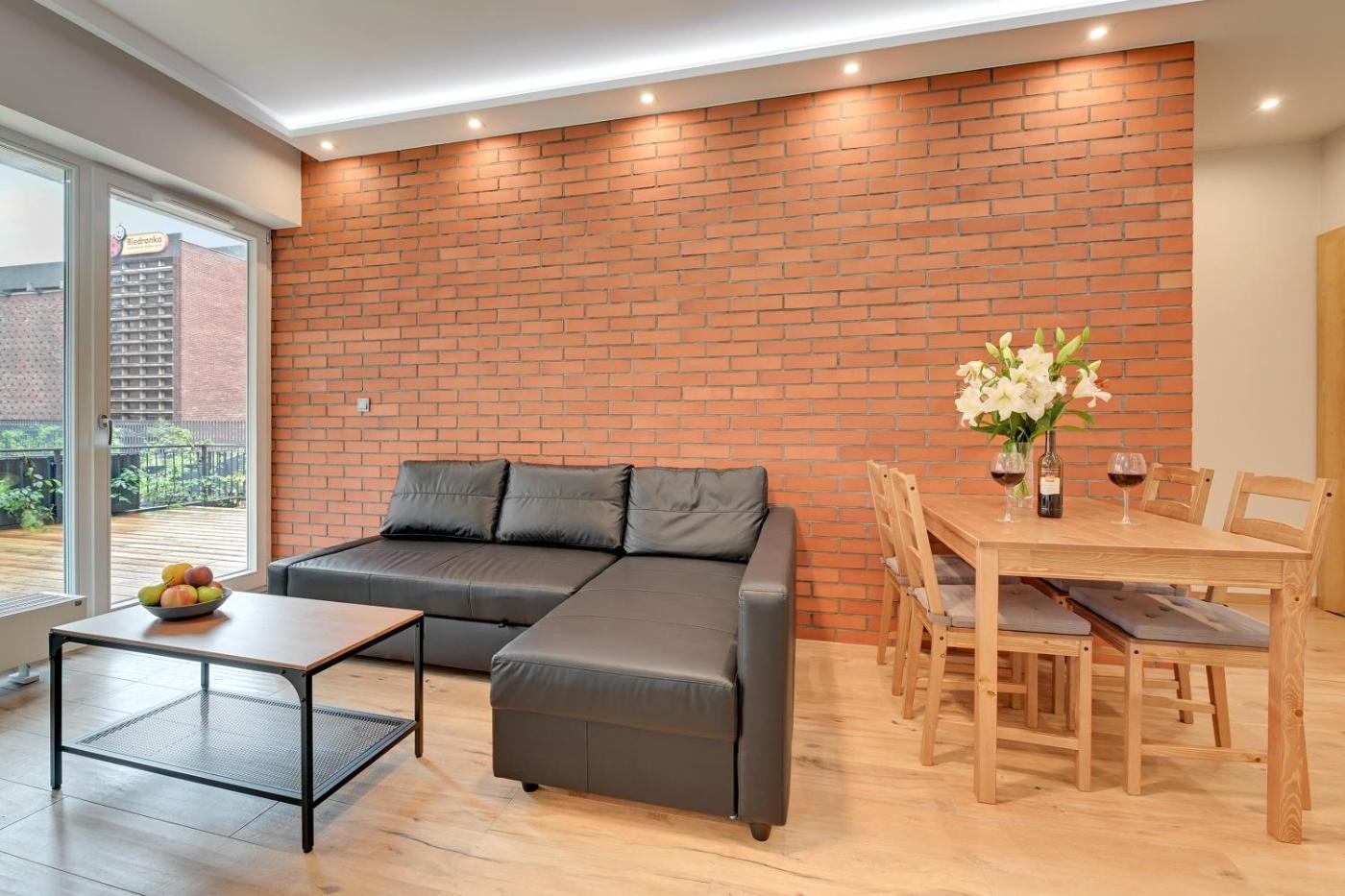 Apartament typu Deluxe. Featuring a private entrance, this apartment comprises 1 living room, 1 separate bedroom and 1 bathroom with a walk-in shower and a hairdryer. Meals can be prepared in the kitchen, which comes with a stovetop, a refrigerator, a dishwasher and kitchenware. Boasting a terrace with garden views, this apartment also provides a washing machine and a flat-screen TV with streaming services. The unit offers 3 beds. Apartament - 6 osobowy. Powierzchnia pokoju ok.: 57 mkw.
