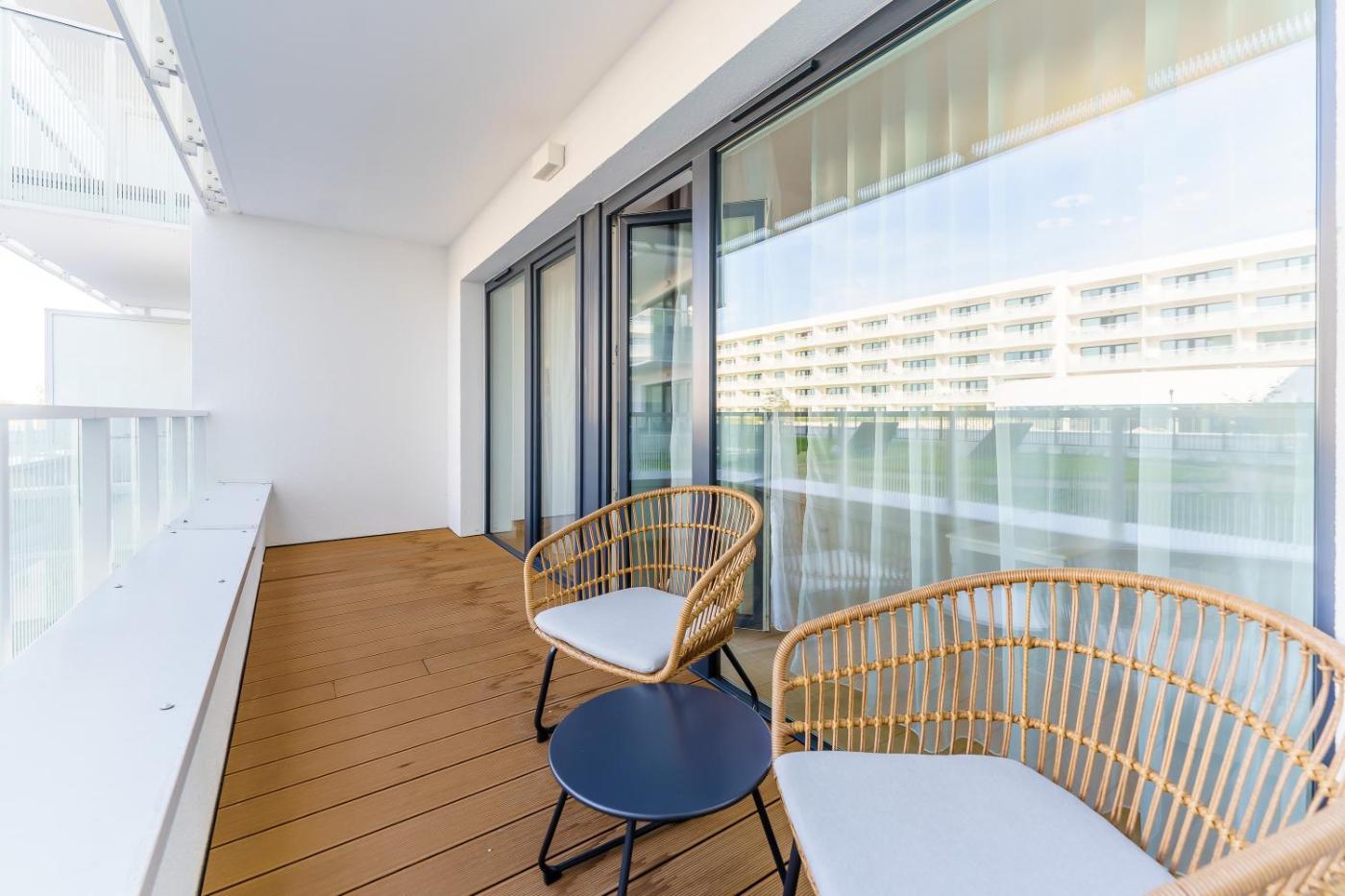 Apartament typu Deluxe z 2 sypialniami i balkonem. This apartment includes 1 living room, 2 separate bedrooms and 1 bathroom with a shower and a hairdryer. Guests can make meals in the kitchen that is fitted with a stovetop, a refrigerator, a dishwasher and kitchenware. Boasting a terrace, this apartment also offers a washing machine, a coffee machine and a flat-screen TV. The unit has 3 beds. Apartament - 7 osobowy. Powierzchnia pokoju ok.: 60 mkw. ;