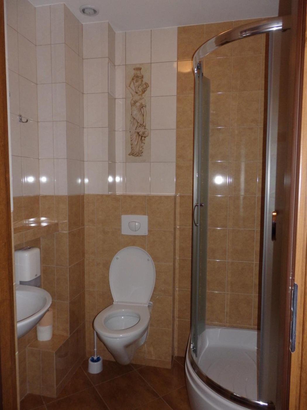 Pokój trzyosobowy. Providing free toiletries, this triple room includes a private bathroom with a shower and a hairdryer. The triple room provides a flat-screen TV, a wardrobe, a tiled floor, heating as well as garden views. The unit offers 3 beds. Pokój Trzyosobowy - 3 osobowy. Powierzchnia pokoju ok.: 26 mkw. ;