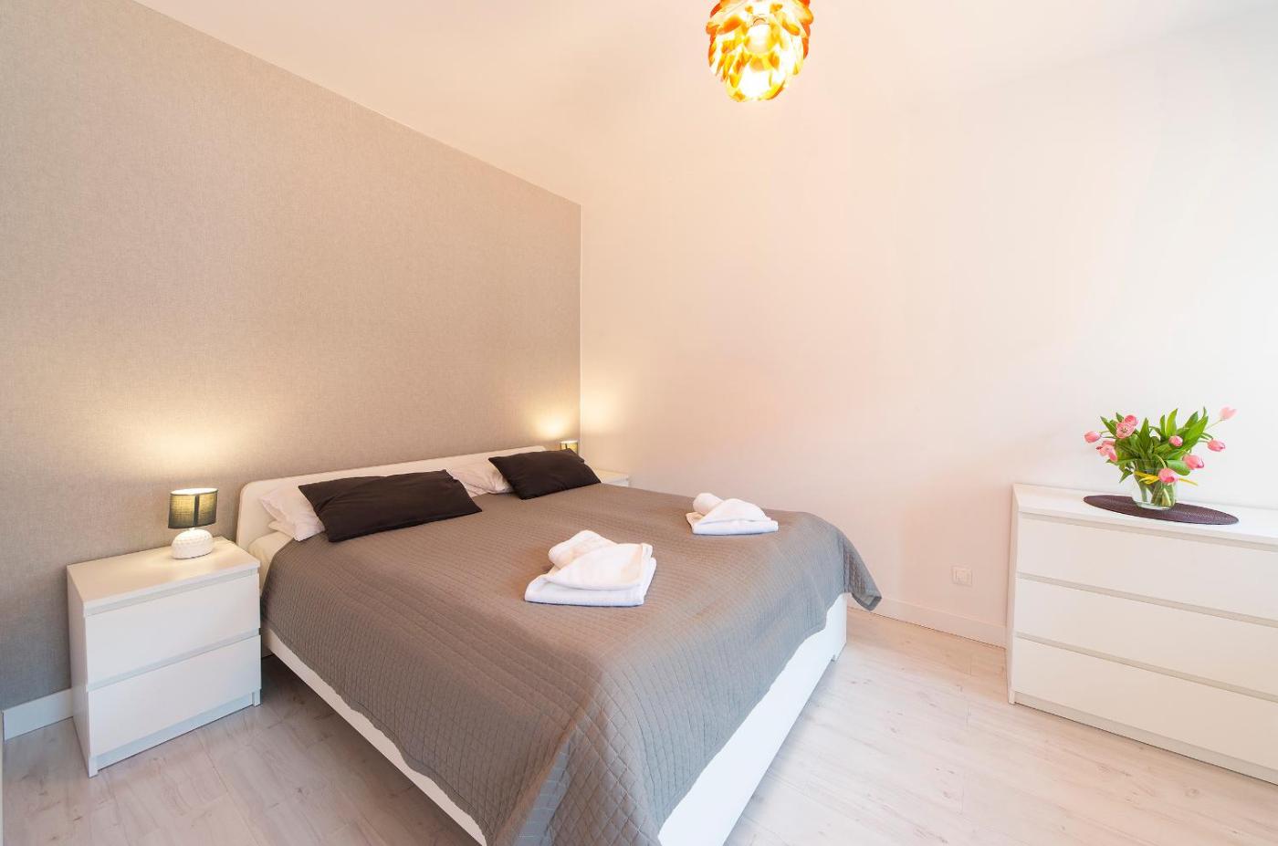 Apartament z 1 sypialnią. This apartment includes 1 living room, 1 separate bedroom and 1 bathroom with a walk-in shower and a hairdryer. Meals can be prepared in the well-fitted kitchenette, which has a stovetop, a refrigerator, a dishwasher and kitchenware. The apartment offers a washing machine, a tea and coffee maker, a seating area, a dining area, as well as a flat-screen TV. The unit has 2 beds. Apartament - 6 osobowy. Powierzchnia pokoju ok.: 56 mkw. ;